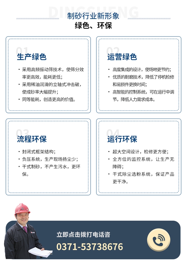 对于利于环保, 传统的湿法生产线生产过程需大量水对砂进行清洗, 从一定角度来讲对 于水资源是一种浪费,并且对于在生产过程中产生的石粉的冲洗也是对矿产资源的一种浪 费。而干法则正好避免了这些, 所以从某种程度上节约了水资源和矿产资源, 比湿法生产线 更加环保。