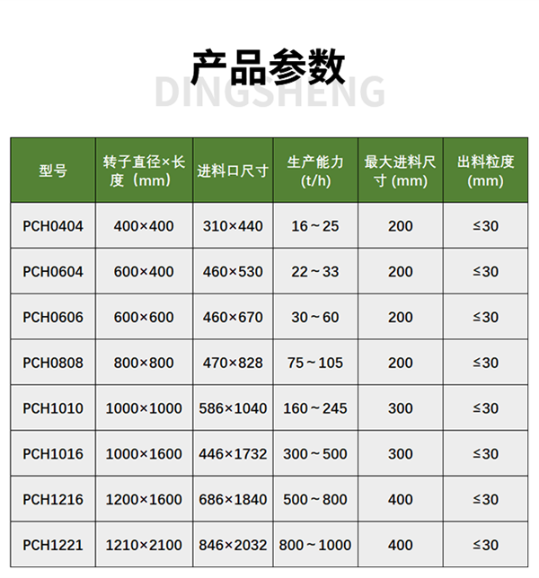 环锤式破碎机用于各种脆性物料,如煤、煤矸石、炉渣、页岩、疏松石灰石等,被破碎物料的抗压强度不超过120MPa,表面水分小于9%。