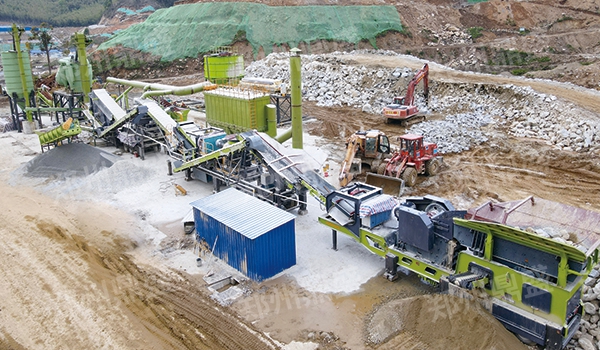 该项目以花岗岩为原料,采用粗碎颚破模块、中碎圆锥模块、除土筛分模块,进料粒度:0-800mm,成品要求0-100mm混合料,项目分两期进行建设,一期项目采用粗破碎、中细破碎和除土筛分相结合的工艺,采用粗碎颚破模块、中碎圆锥模块、除土筛分模块,成品为0-100mm混合料,二期项目以制砂为主,采用制砂模块,0-5mm、5-10mm、10-31.5mm。