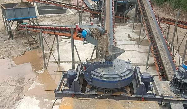 2、粗破后的物料由胶带输送机送入到制砂机进行进一步破碎;