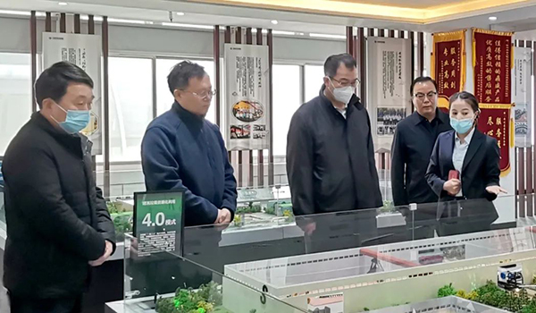 何守法厅长一行首先参观了郑州古天乐太阳集团城入口绿色循环产业园展示大厅,听取了公司重点项目发展和多个绿色低碳技术创新成果的介绍,包括建筑垃圾及工业固废资源化利用装备、金属耐磨材料及绿色胶凝材料研发制造等方面内容。