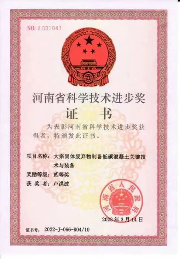 3月24日,河南省人民政府发布《关于2022年度河南省科学技术奖励的决定》。根据《河南省科学技术奖励办法》(省政府令第57号)规定,经省政府常务会议审议,特别对2022年度河南省科学技术杰出贡献奖、河南省自然科学奖、河南省技术发明奖、河南省科学技术进步奖等进行表彰奖励。其中由郑州古天乐太阳集团城入口联合华北水利水电大学、中建七局第四建筑有限公司共同完成的“大宗固体废弃物制备低碳混凝土关键技术与装备”项目,喜获河南省科学技术进步二等奖,填补了郑州古天乐太阳集团城入口在该领域内的空白,为公司在技术创新领域开创新局面。