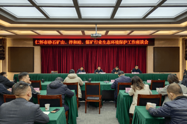 近日,贵州省遵义市生态环境局仁怀分局组织召开仁怀市砂石矿山、搅拌站、煤矿行业生态环境保护工作座谈会。仁怀市住建局、国土资源局、工业商务局分管负责人及各企业代表出席会议。