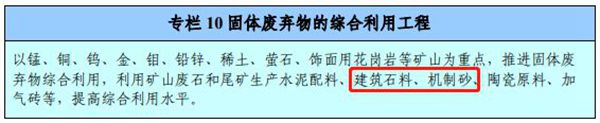 《规划》明确,根据各地区资源禀赋、环境承载力、市场需求、运输半径等条件,合理确定区内砂石采矿权总量、最低开采规模,有序投入砂石采矿权。积极引导有条件地区划定集中开采区。在集中开采区内,积极推动建设储量规模1500万吨以上、生产规模 100万吨/年以上的矿山,促进砂石资源规模开发。 合理确定制砂所需建筑用石料采矿权出让政策,保障机制砂原材料供应。在保证产品质量和生态安全的前提下,鼓励利用矿山尾矿与废石生产机制砂,节约资源,提高矿山固体废物综合利用水平。