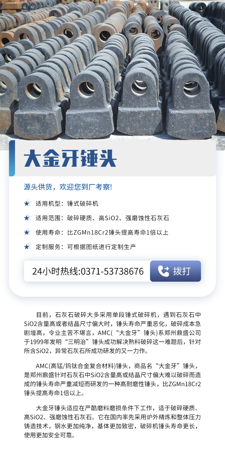 适用范围:破碎硬质、高SiO2、强磨蚀性石灰石