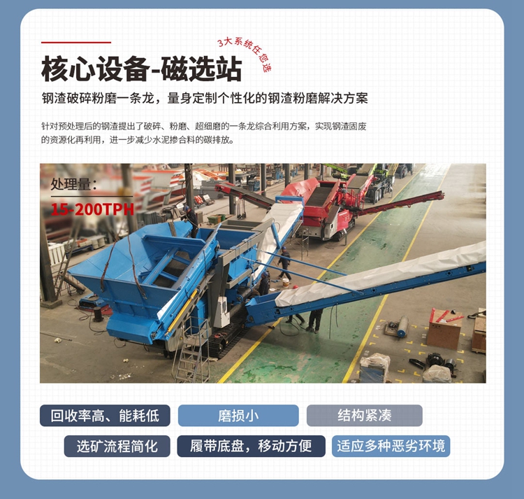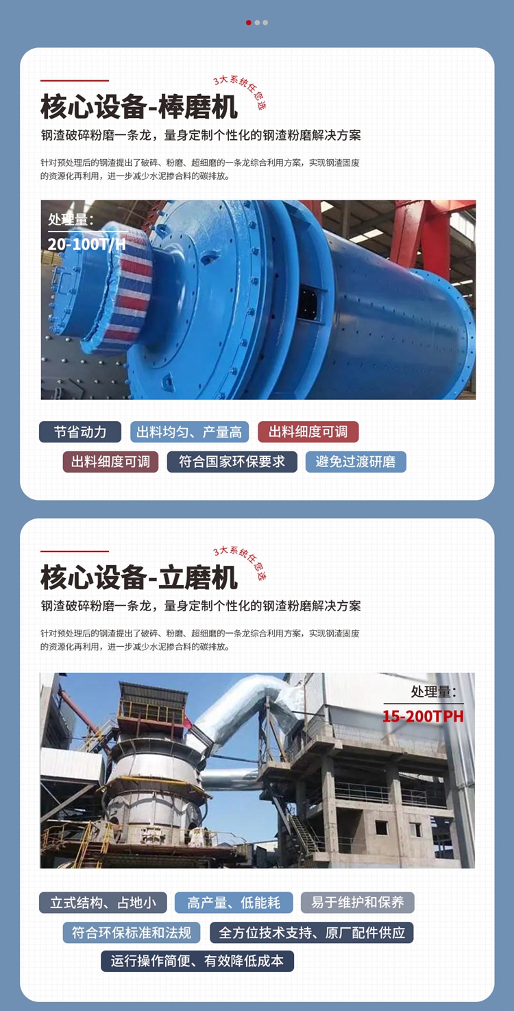 针对预处理后的钢渣提出了破碎、粉磨、超细磨的一条龙综合利用方案,实现钢渣固废的资源化再利用,进一步减少水泥掺合料的碳排放。