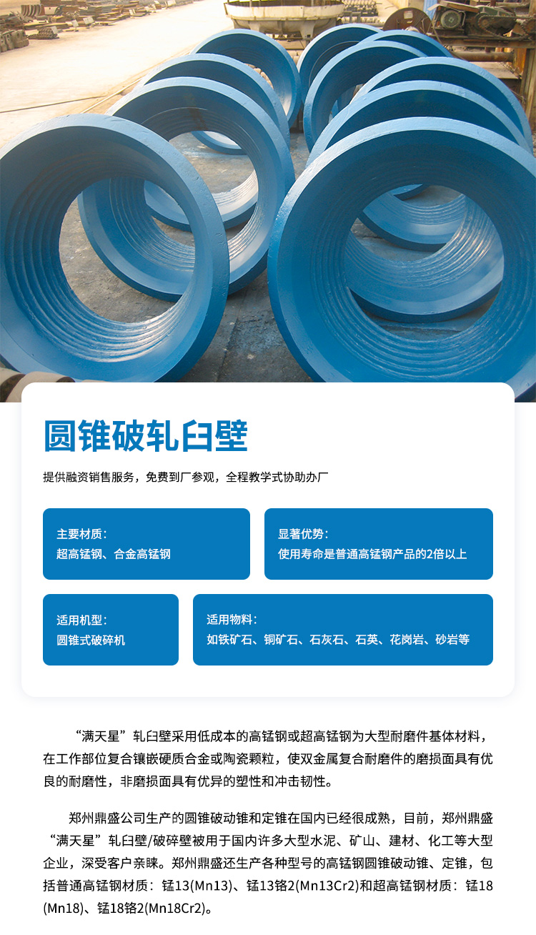 适用范围:破碎硬质、高SiO2、强磨蚀性石灰石
